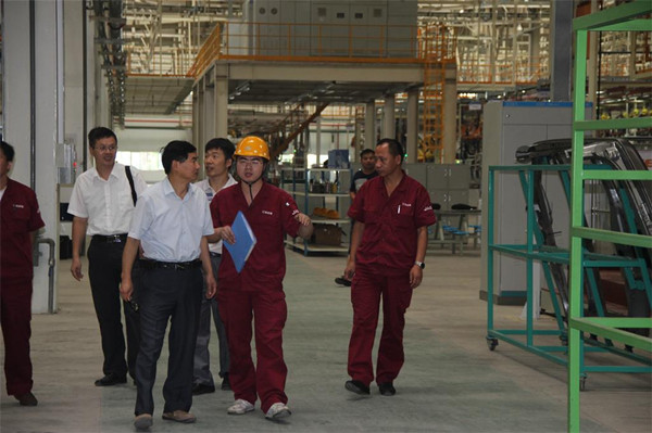 李平一行在江淮安驰汽车有限公司副总经理张礼进和人力资源部付兴武陪同下先后参观了该企业的冲压事业部、焊装事业部、涂装事业部和总装事业部。