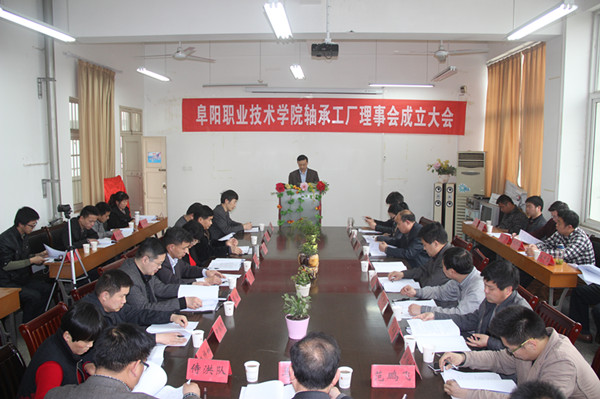 阜阳职业技术学院轴承工厂理事会是由阜阳职业技术学院、阜阳维科特精密轴承有限公司、铜陵明源机电有限公司、阜阳华峰轴承精密轴承有限公司和阜阳农业机械研究所等单位共同协商成立的对阜阳职业技术学院轴承工厂的重大问题进行监督、审议、指导、决策的组织,设生产委员会、培训委员会、监督委员会,将指导阜阳职业技术学院轴承工厂建设成集教学、生产、科研、服务与一体的教学工厂。