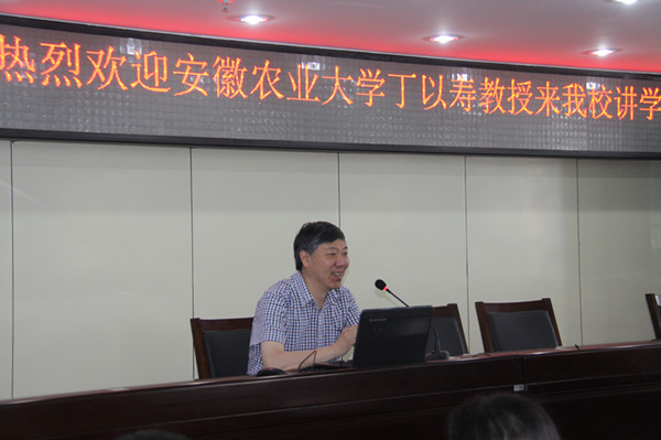 | 5月4日, 安徽农业大学茶史及茶文化硕士研究生导师、中华茶文化研究所常务副所长丁以寿教授应邀来我校做《中华茶文化的形成与传播》学术报告,生化工程学院院长王平,经济贸易系主任张道远,生化工程学院党总支书记王峰,副院长龚雪梅和来自生化工程学院园艺技术专业、经济贸易系酒店管理专业等师生共150多人参加了报告会,报告会由王平主持。